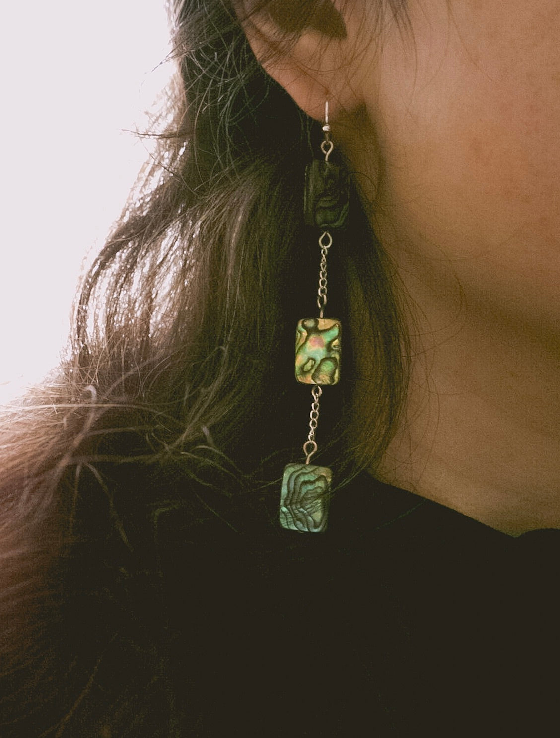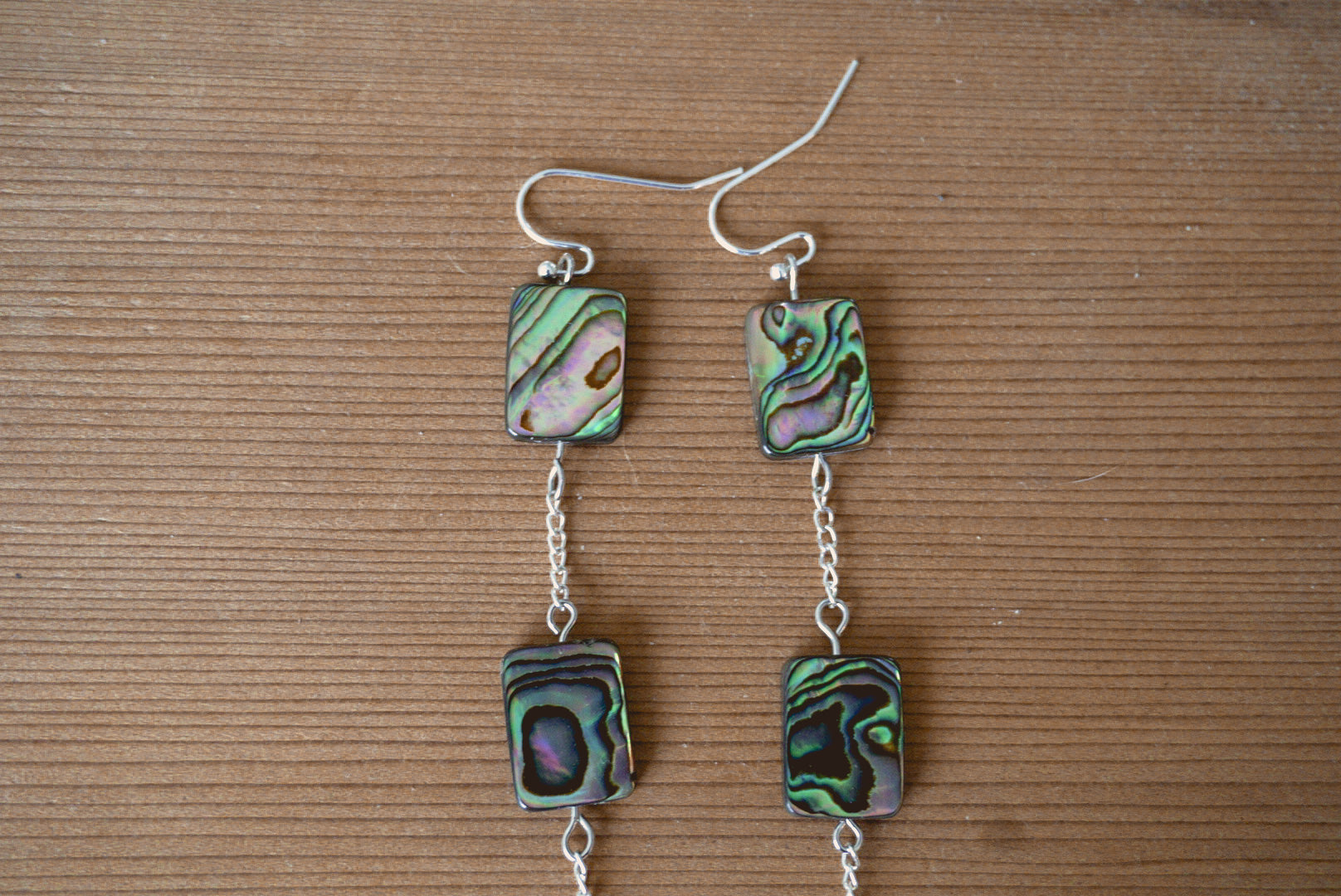 Three tier earrings featuring a stunning combination of silver and abalone, creating a one of a kind pair that embodies nature's beauty.