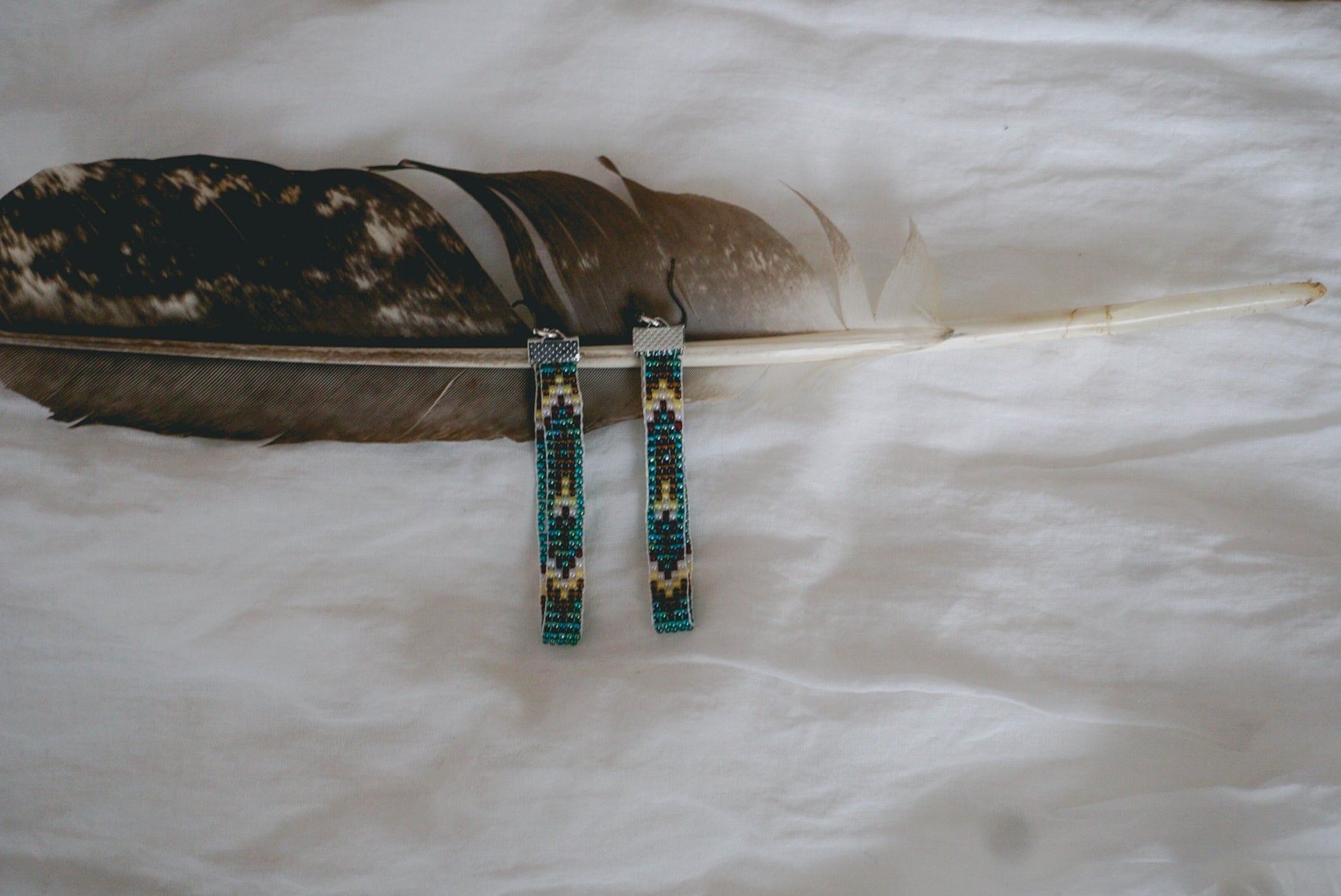 the perfect fusion of nature and craftsmanship , small intricate beaded earrings inspired by the feathers of an eagle.